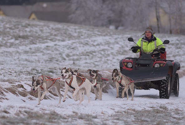 Wir trainieren im Herbst und Frühwinter, neben dem Trainingswagen, auch öfter mit dem Quad. Quadtraining hat viele Vorteile, ein großer Vorteil ist der Sicherheitsaspekt und die leichte Unterstützung bergauf.