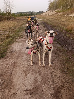 Ostertraining 2024 mit dem 6er Team in Lauchhammer - Deutschland. Daisy und Floh im Lead. Beggie und Liv im Team. Bella und Angel im Wheel.